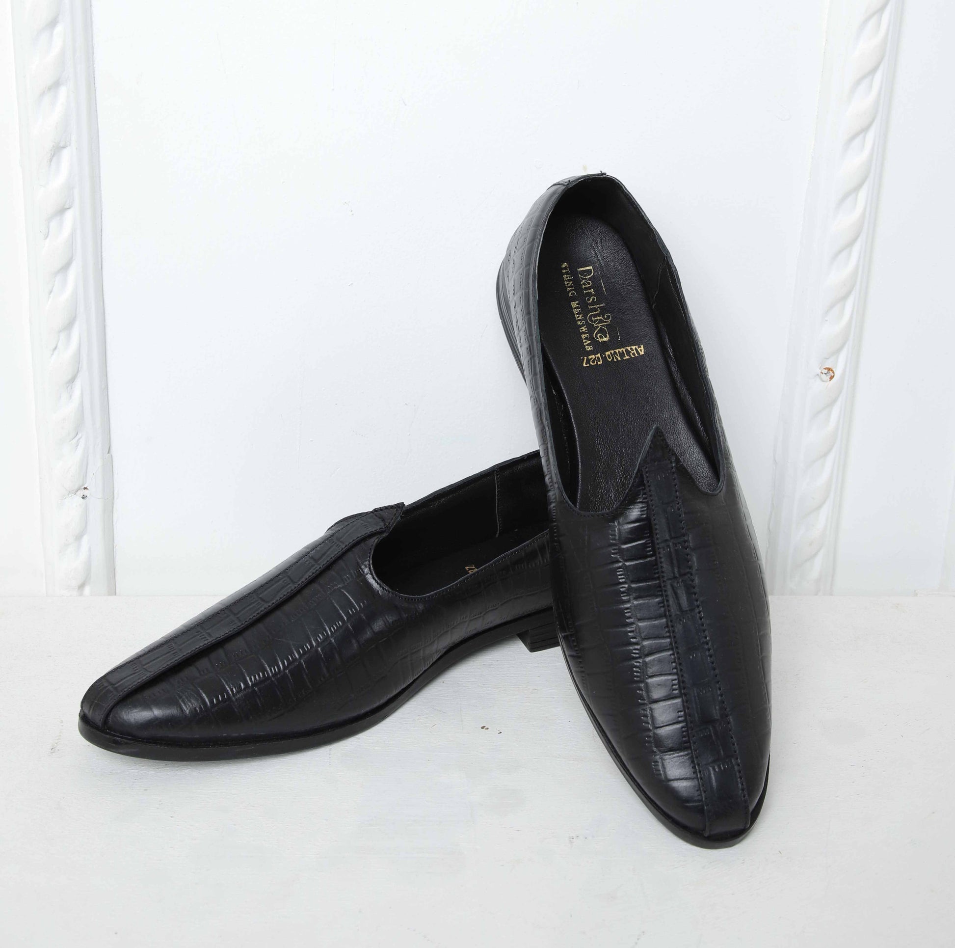 Black leather Jutti that matches well with Pathani Suit, Kurta Pajamas and other ethnic wear.
