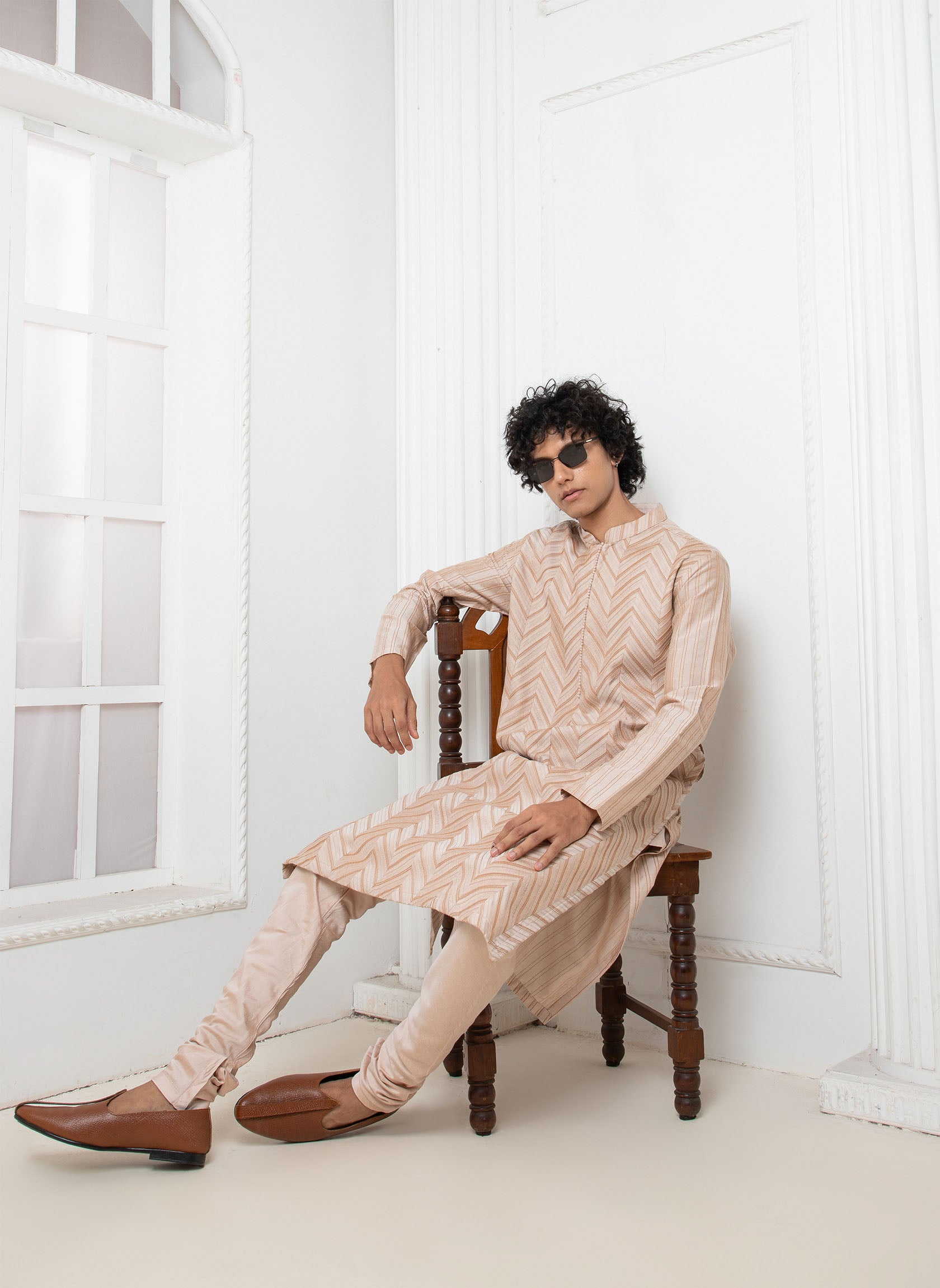 Rose Chevron Pintuck Kurta set